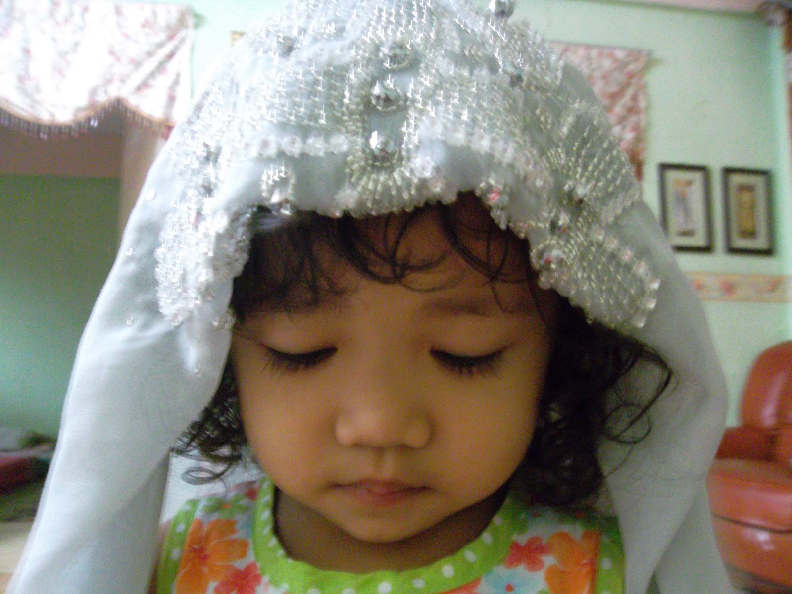 #dia ambil tudung bawal saya lepas tu letak atas kepala ala-ala veil pengantin.